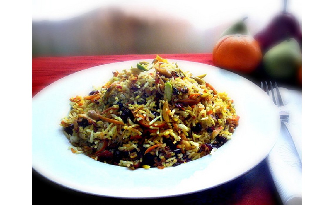 Thanksgiving is one of my favorite holidays. It's all about getting together with the people you love and care about. Spending time together, telling stories, laughing, giving thanks and of course eating delicious food and mouth-watering sweets. Like many Iranians I do add my own Persian cooking touches to the Thanksgiving menu. I feel the meal is not complete if there's no rice to go with it! Out of an array of Persian rice dishes, there are two that I think would complement the Thanksgiving feast. Rice with dill and Lima beans is a great choice which I have written about here. Another great choice is the sweet rice (shirin polow) which is usually served with chicken and goes well with turkey too.