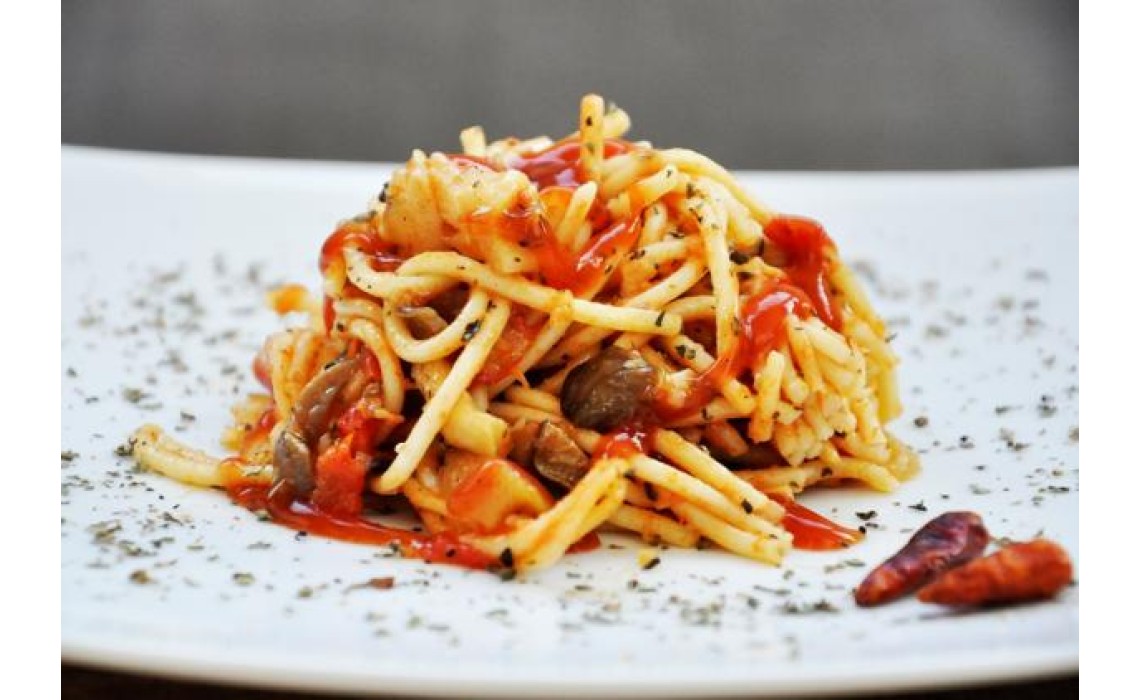 Oyster Mushroom Spaghetti with Tomato and Basil Sauce