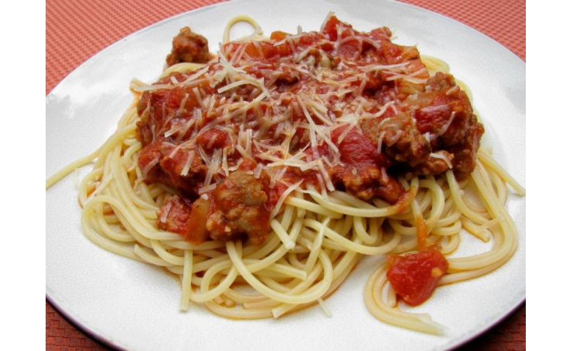 Spoon sauce over drained spaghetti noodles and sprinkle with parmesan cheese.